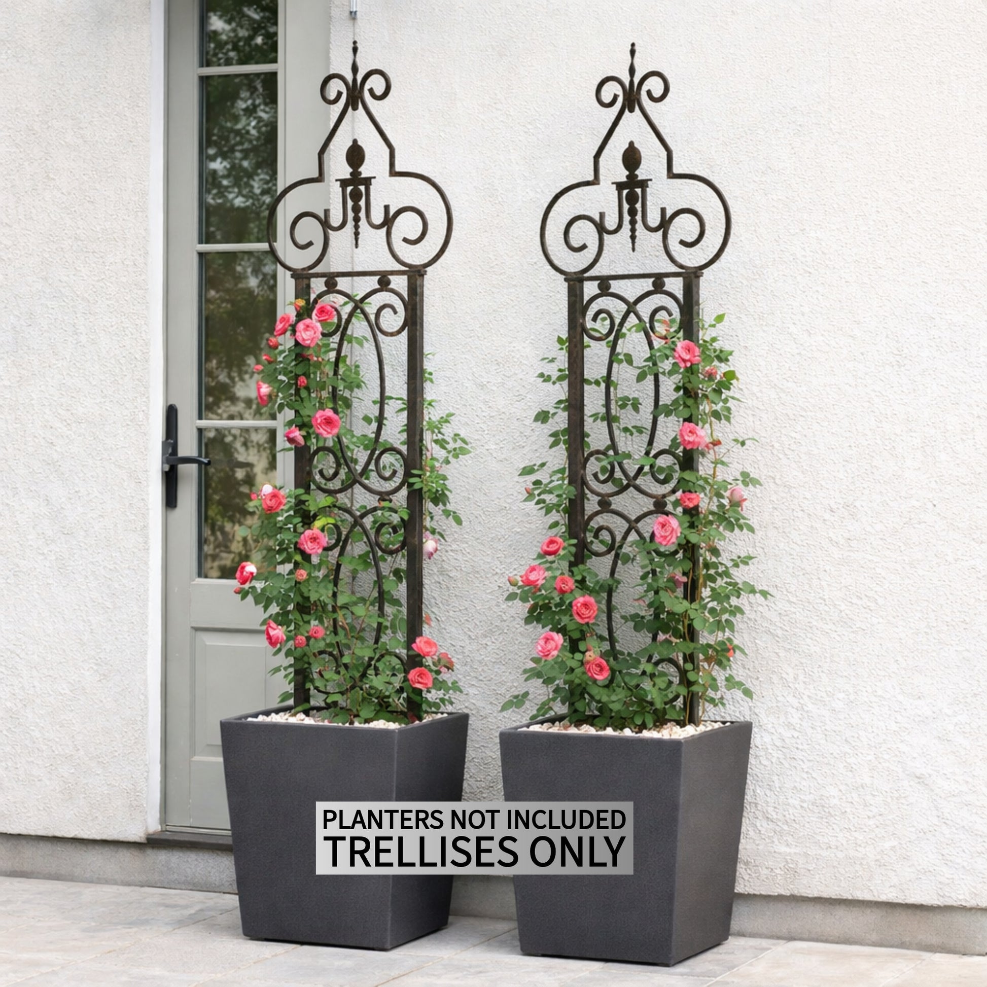 This SKU includes 2 trellises as shown in the photo. Planters are not included. Use them together to frame an entry, highlight a pair of containers, or create symmetry on a porch or patio. They are equally beautiful with flowering vines and climbing plants or displayed on their own as architectural garden accents.